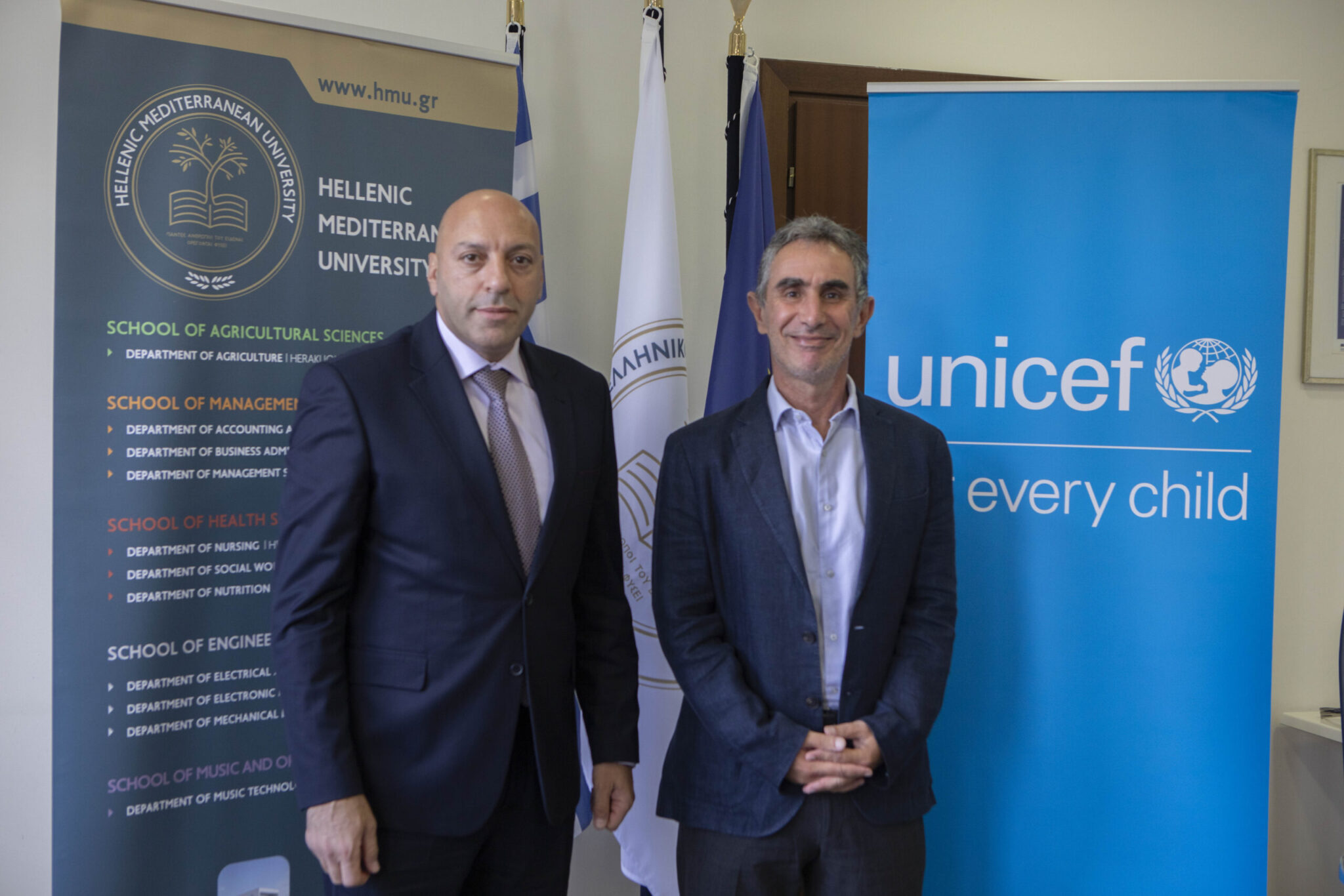 Μνημόνιο Συνεργασίας (MoU) μεταξύ του Ελληνικού Μεσογειακού Πανεπιστημίου (ΕΛΜΕΠΑ) και της United Nations International Children’s Emergency Fund (UNICEF), θα υπογραφεί από τον Πρύτανη Καθ. Νίκο Κατσαράκη και τον Διπλωματικό Εκπρόσωπο της Unicef στην Ελλάδα Dr. Ghassan Khalil.